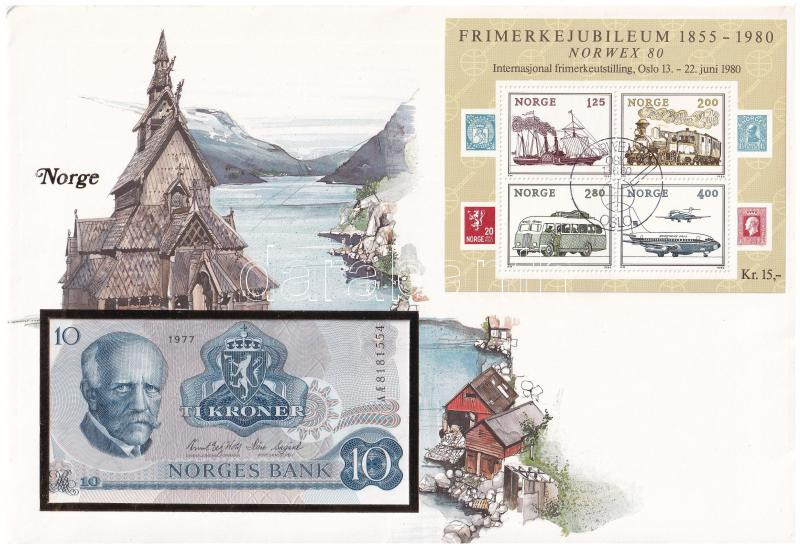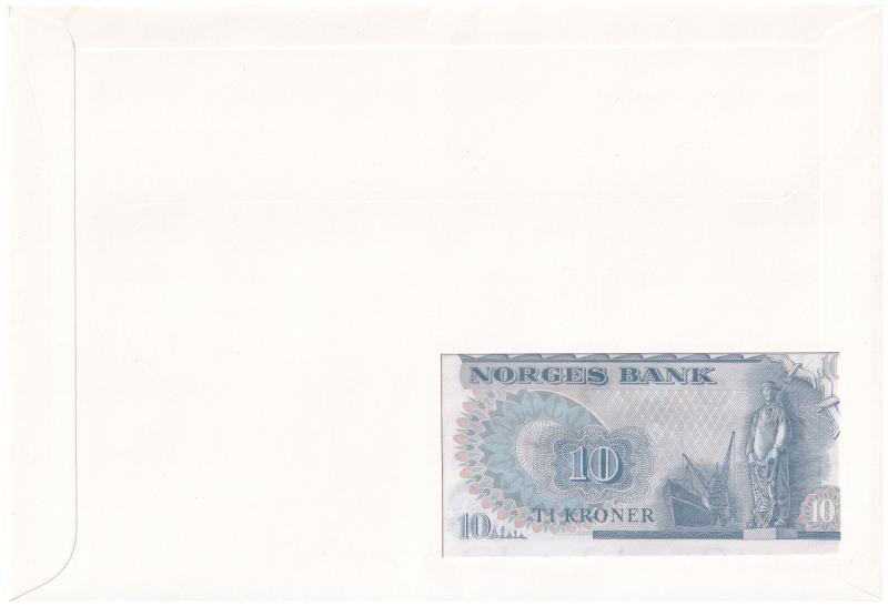 Beschreibung: Norvégia 1977. 10K felbélyegzett borítékban, bélyegzéssel T:I Norway 1977. 10 Kroner in envelope with stamp and cancellation C:UNC
