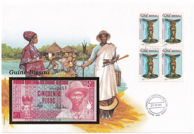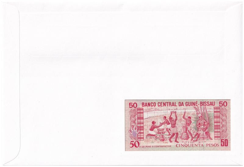 West African States / Guiné-Bissau 1990. 500 Francs in envelope with stamp and cancellation C:UNC