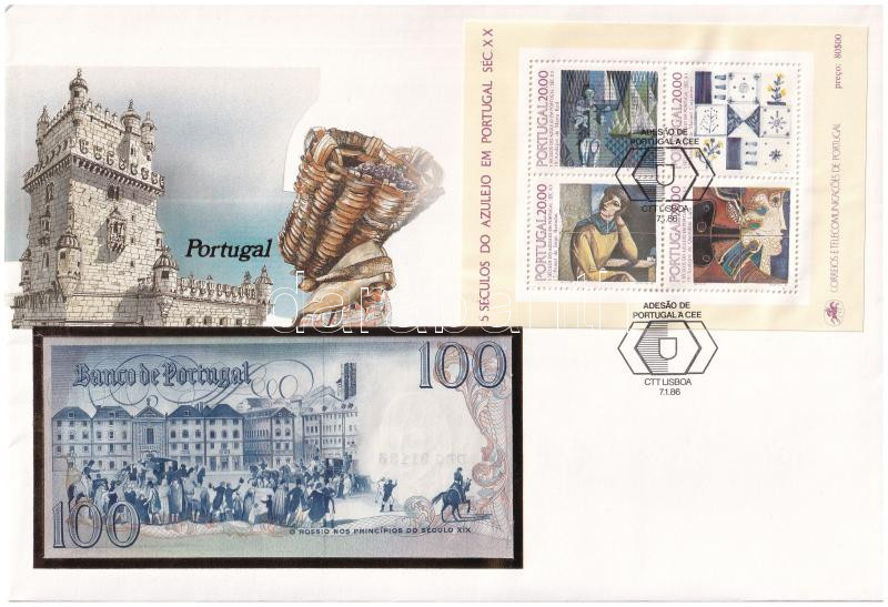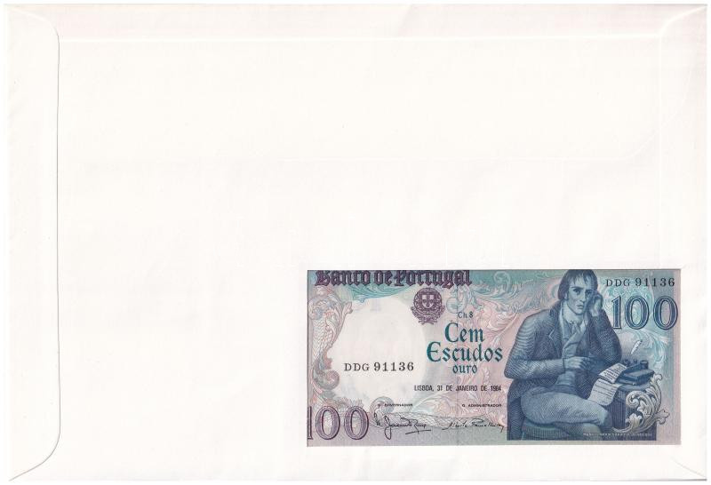 Por... https://www.darabanth.com/de/433-Fernauktion/433.0/Numismatik/Umschlage-mit-Munzen-und-Banknoten~2000018/Portugalia-1984-100E-felbelyegzett-boritekban-belyegzessel-TI--Portugal-1984-100-Esucodos~II2794765