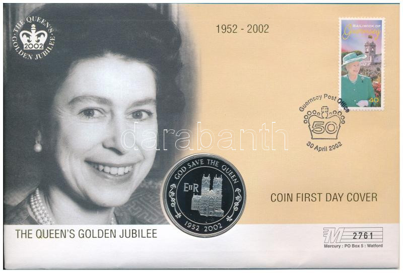 Szent Ilona / Ascension-sziget 2002. 50p Cu-Ni "II. Erzsébet uralkodásának 50. évfordulója" érmés, "2761" sorszámú, felbélyegzett borítékban T:PP