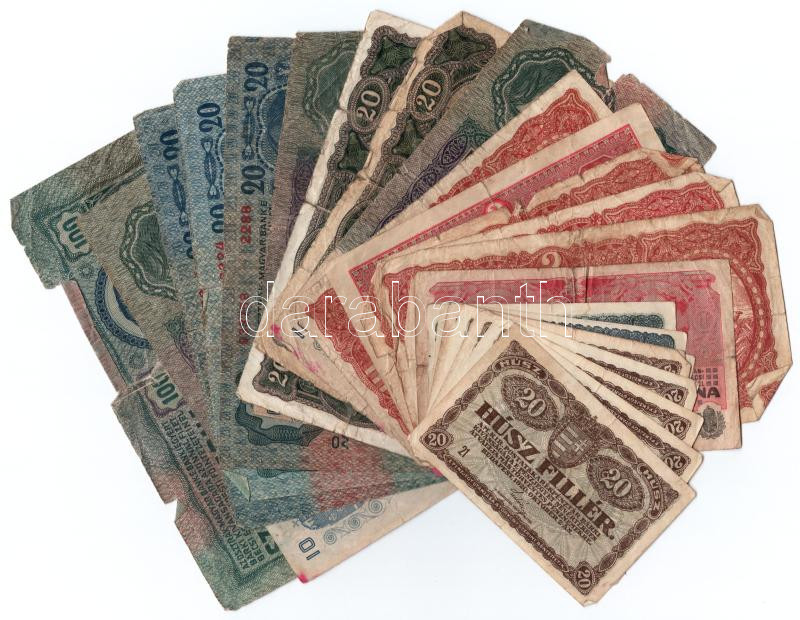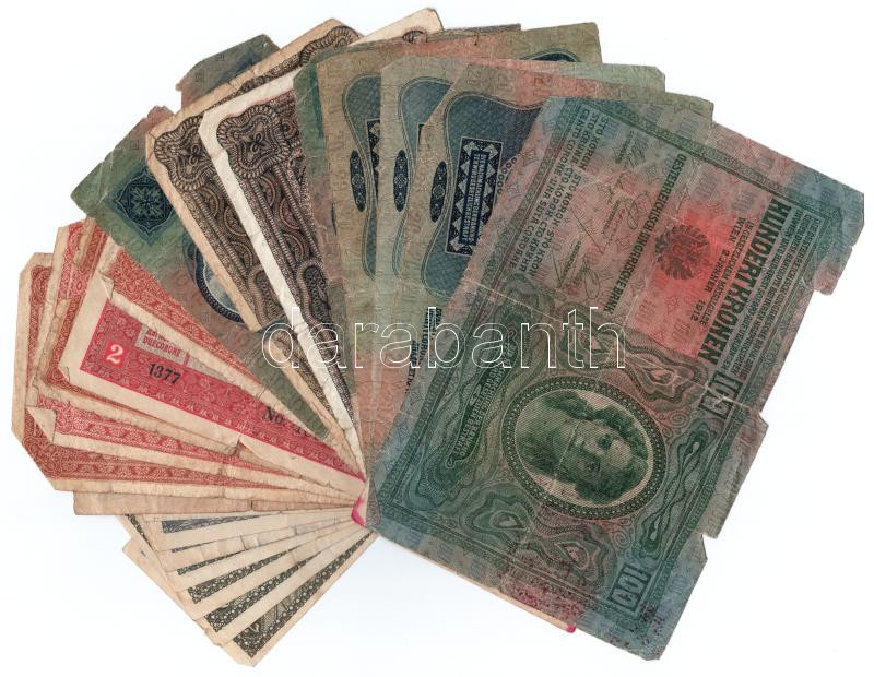 1913-1920. 1K-20K (15x) + 1920. 20f-50f (9x) T:III-IV közte szakadás, ... https://www.darabanth.com/de/433-Fernauktion/433.0/Numismatik/Ungarische-Banknoten~2000015/1913-1920-1K-20K-15x-plus-1920-20f-50f-9x-TIII-IV-kozte-szakadas-folt-saroktores-folt-ly~II2795709