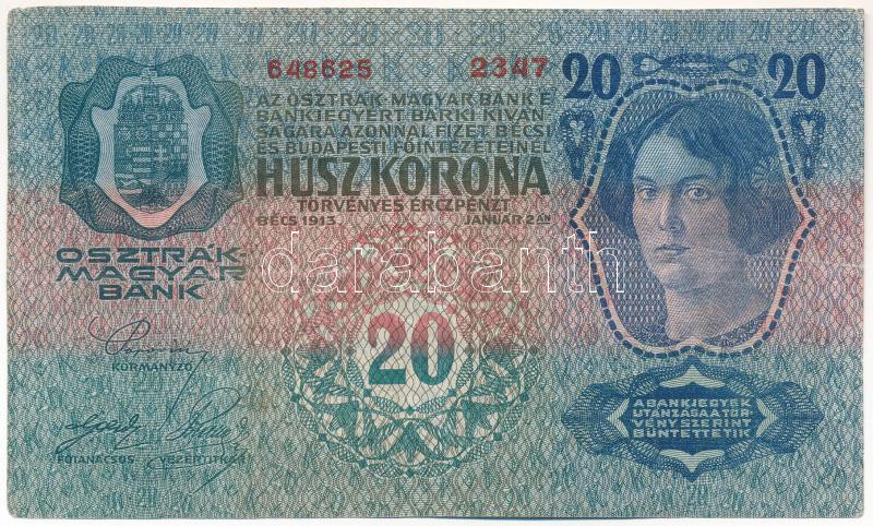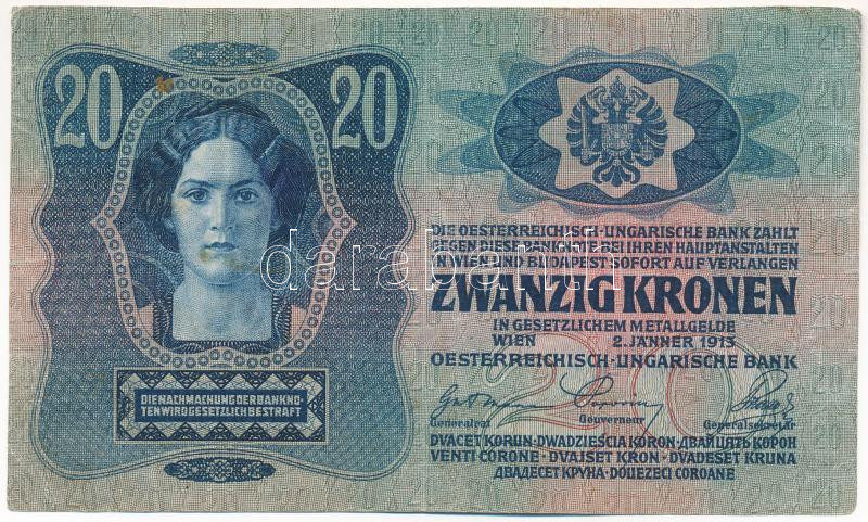 1913. 20K felülbélyegzés nélkül "II. kiadás" T:III Adamo K17 https://www.darabanth.com/de/433-Fernauktion/433.0/Numismatik/Ungarische-Banknoten~2000015/1913-20K-felulbelyegzes-nelkul-II-kiadas-TIII-Adamo-K17~II2790859