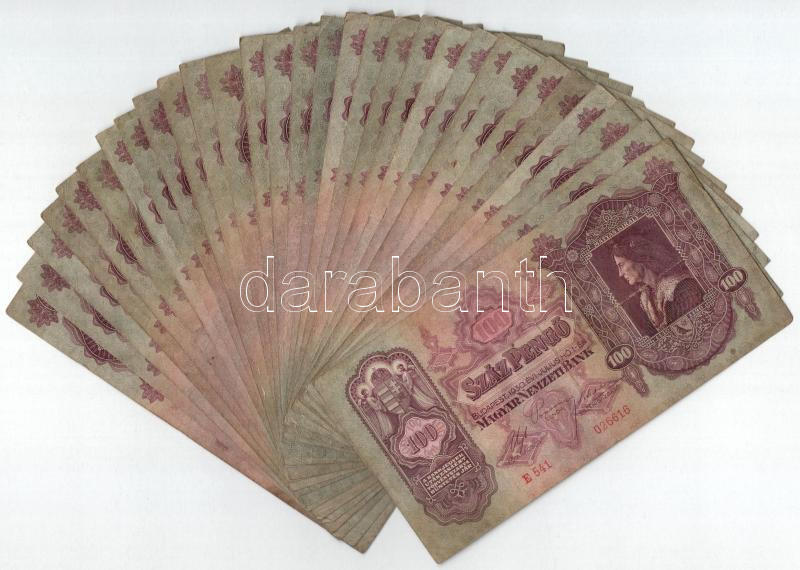1930. 100P (30x) T:III,III- Adamo P17 https://www.darabanth.com/de/433-Fernauktion/433.0/Numismatik/Ungarische-Banknoten~2000015/1930-100P-30x-TIII-III-Adamo-P17~II2789674