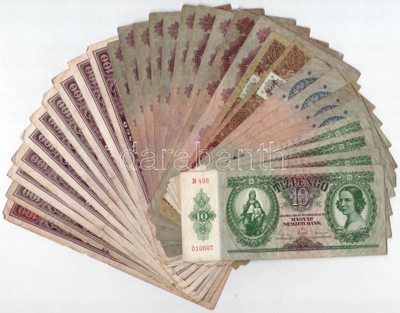 Beschreibung: 1930-1945. 30db-os vegyes inflációs pengő tétel T:III,III- közte folt, szakadás
