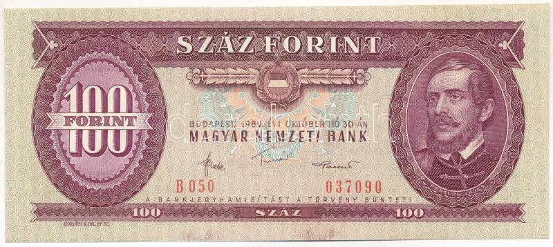 1984. 100Ft "B 050 037090" nyomdai festékfolt T:I,I-