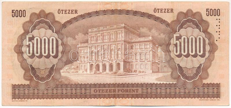 Beschreibung: 1990. 5000Ft "H 16840679" T:III Hungary 1990. 5000 Forint "H 16840679" C:F Adamo F49