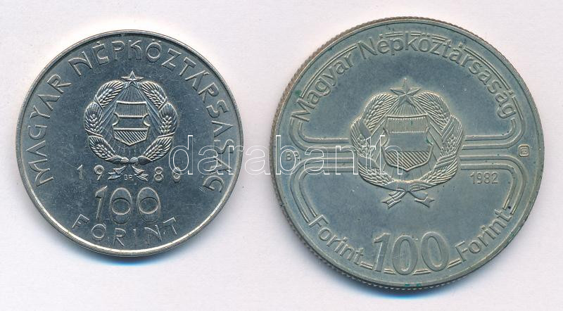 Beschreibung: 1980. 100Ft Ni "Szovjet-magyar közös űrrepülés" + 1982. 100Ft Cu-Ni "Labdarúgó világbajnokság 1982" T:1- patina, karc