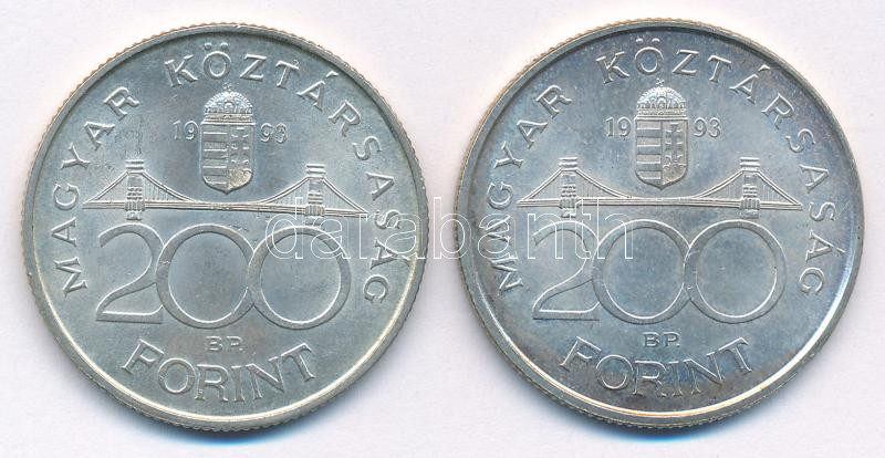Beschreibung: 1993. 200Ft Ag "MNB" (2x) T:1- Adamo F13