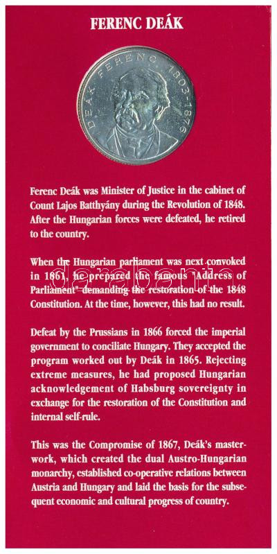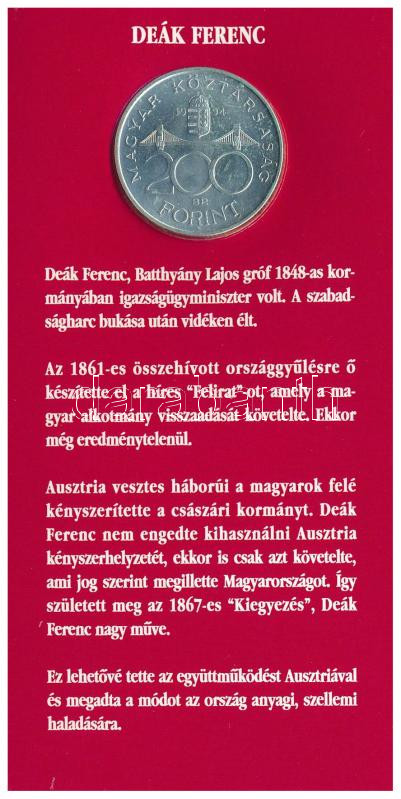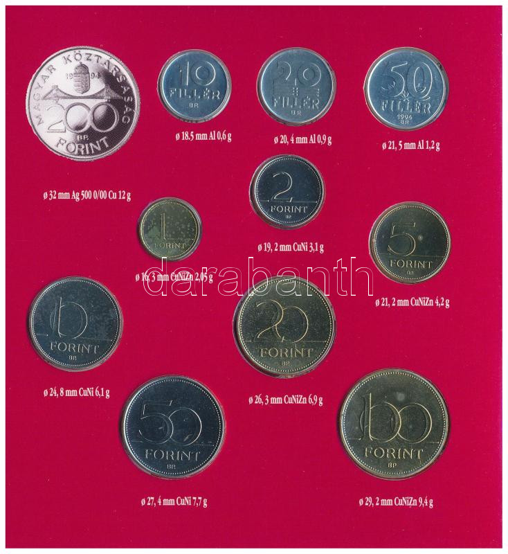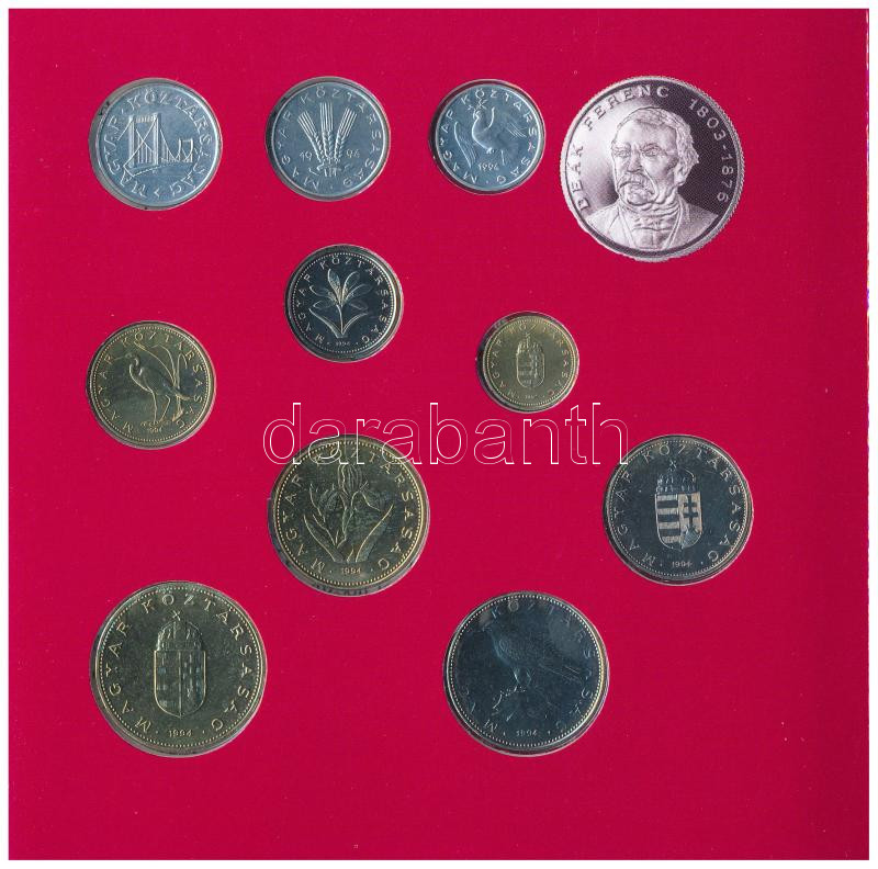 1994. 10f-200Ft (11xklf) forgalmi sor dísztokban, közte 1994. 200Ft Ag "Deák", "Magyarország pénzérméi" sorozat. A tokon a ragasztás részben elengedett. T:BU patina Adamo FO27.2