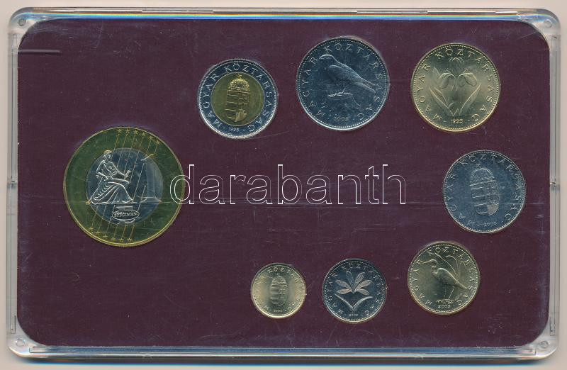 1995-2004. 1Ft-10Ft (7xklf) forgalmi érme összeállítás + 1EUR próbaver... https://www.darabanth.com/de/433-Fernauktion/433.0/Numismatik/Ungarische-Munzen-und-Munzen-mit-ungarischem-Munzzeichen~2000014/1995-2004-1Ft-10Ft-7xklf-forgalmi-erme-osszeallitas-plus-1EUR-probaveret-muanyag-disztokban-~II2790793