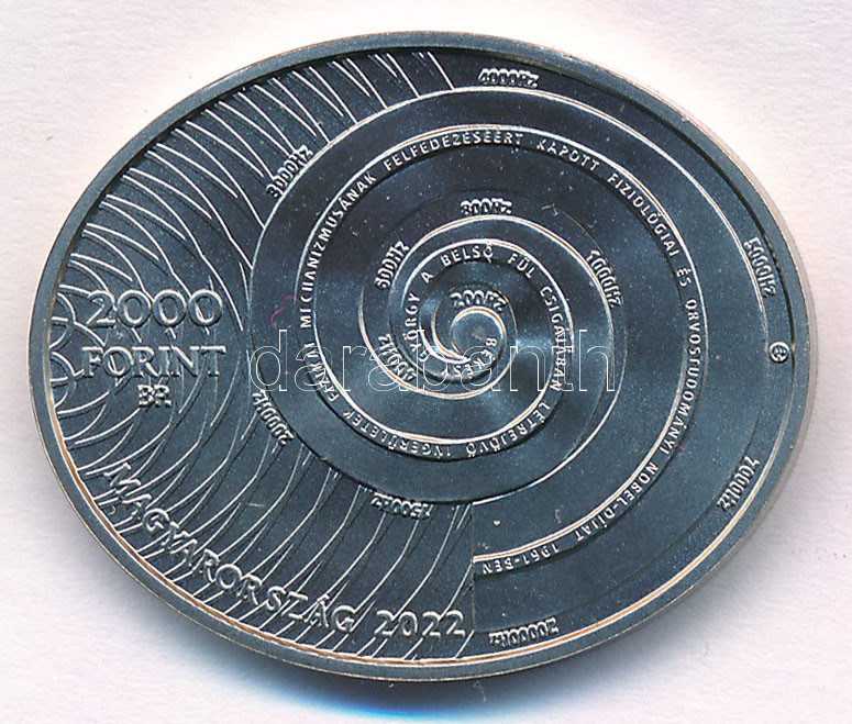 2022. 2000Ft Cu-Ni "Magyar származású Nobel-díjasok - Békésy Györ... https://www.darabanth.com/de/433-Fernauktion/433.0/Numismatik/Ungarische-Munzen-und-Munzen-mit-ungarischem-Munzzeichen~2000014/2022-2000Ft-Cu-Ni-Magyar-szarmazasu-Nobel-dijasok-Bekesy-Gyorgy-TBU~II2793609