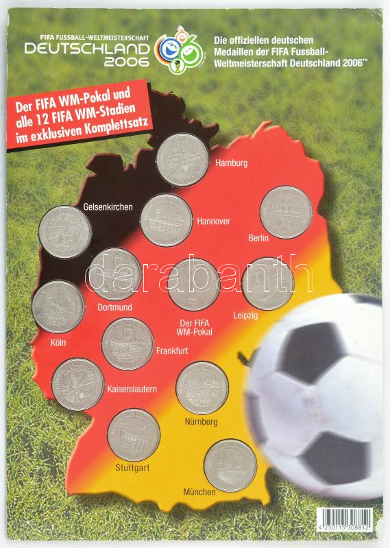 Németország 2006. "FIFA labdarúgó-világbajnokság 2006" 13 darabos fém emlékérem sorozat karton emléklapon (29mm) T:1- karton viseltes Germany 2006. "FIFA Football World Cup 2006" 13 pieces metal commemorativ medal series in original cardboard (29mm) C:AU cardboard in used condition