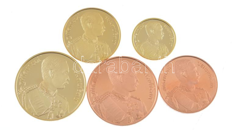 Beschreibung: Thaiföld DN. "V. Ráma király / Angkor-Vat templom" 5xklf emlékérem a Magyar Pénzverő kiadásában, kapszulában T:1- (PP) folt