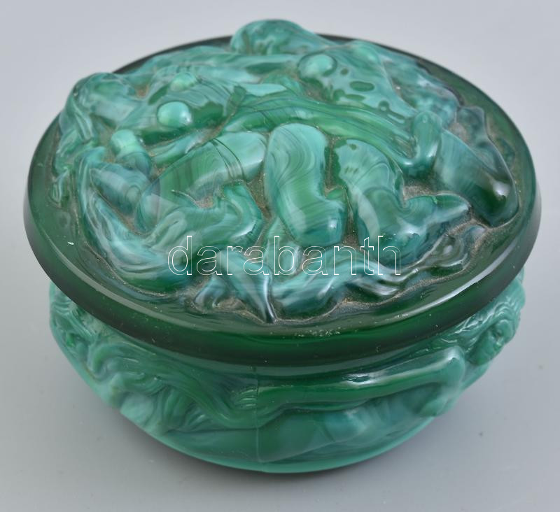 Bohémia Art Deco malachit üveg bonbonier, Terv: Kolekce Ingrid, jelzés... https://www.darabanth.com/de/433-Fernauktion/433.0/Porzellan-Keramik-Glass/Glaser~500007/Bohemia-Art-Deco-malachit-uveg-bonbonier-Terv-Kolekce-Ingrid-jelzes-nelkul-hibatlan-d-10~II2796183