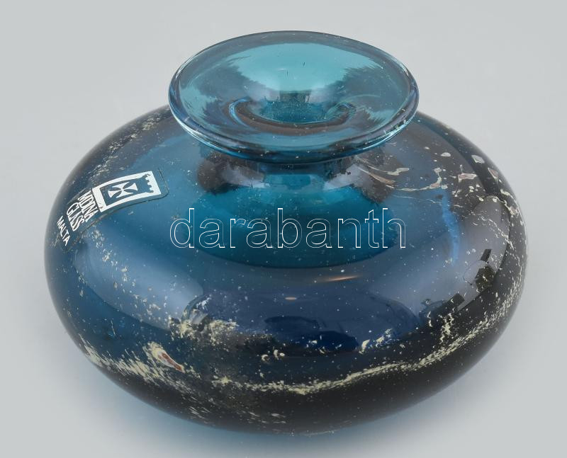Beschreibung: Máltai kék üvegváza, jelzett, anyagában színezett, kis kopásnyomokkal, d: 7 cm