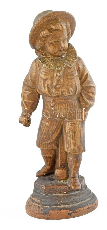 Beschreibung: Kerámia fiú figura, kopásnyomokkal, sérült, hiányos, m: 19 cm