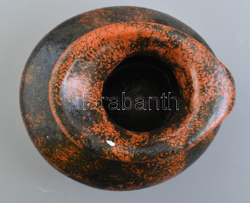 Beschreibung: Pesthidegkúti füles váza. Tervező: Csizmadia Margit (1925-1991). Színes mázakkal festett kerámia, hibátlan. Jelzés nélkül, d: 18 cm