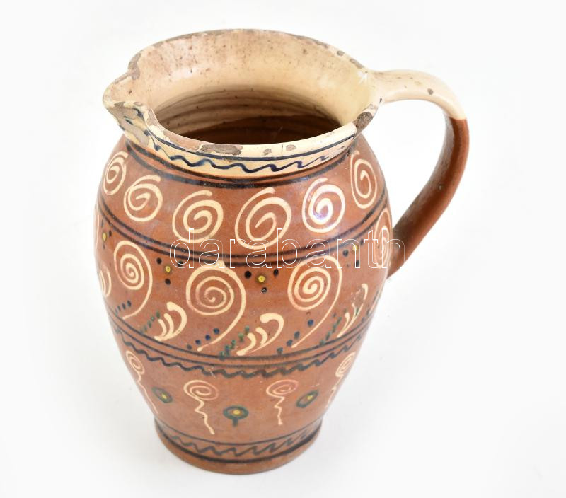 Beschreibung: Sárköz? antik népi kerámia kancsó, sérült, m: 22 cm