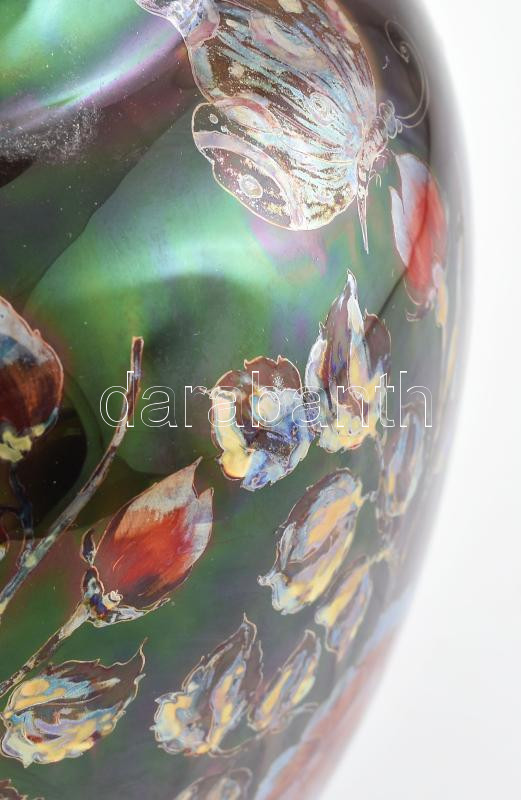 Beschreibung: Zsolnay dísz váza. Többtüzű mázakkal. Palástján virág díszítménnyel. Jelzett. Zsolnay Pécs, 1920 körül. Korának megfelelő állapotban. m: 28,5 cm