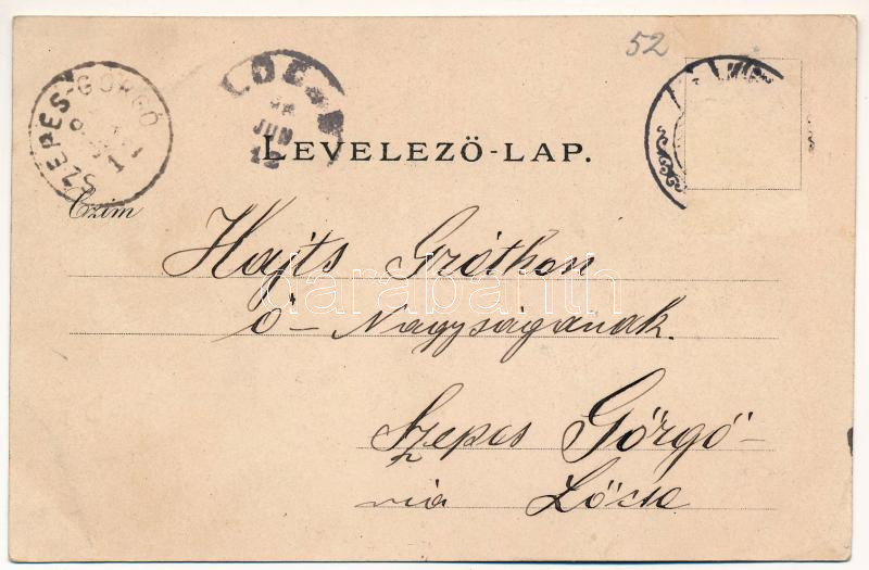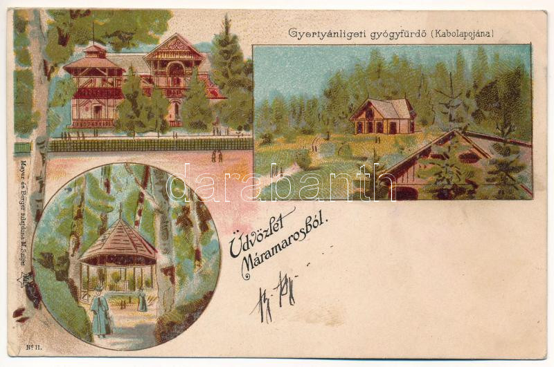 Beschreibung: 1898 (Vorläufer) Gyertyánliget, Polyána-Gyertyánliget, Kabola Polyána, Kobyletska Poliana (Máramaros, Maramures); fürdő. Mayer és Berger / spa. Art Nouveau, litho (EK)