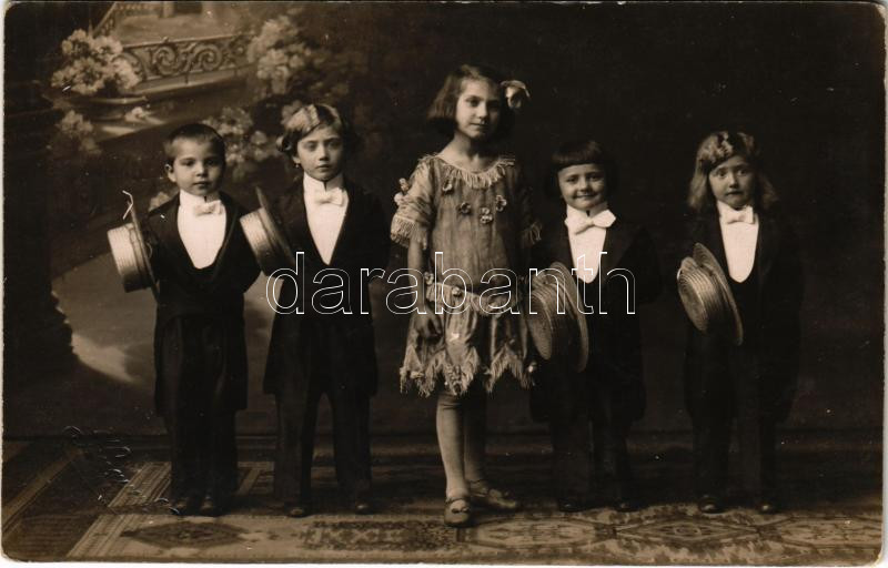 Beschreibung: 1913 Brassó, Kronstadt, Brasov; gyerek színészek az "Aranyeső" darabban / children actors. Knauer G. photo