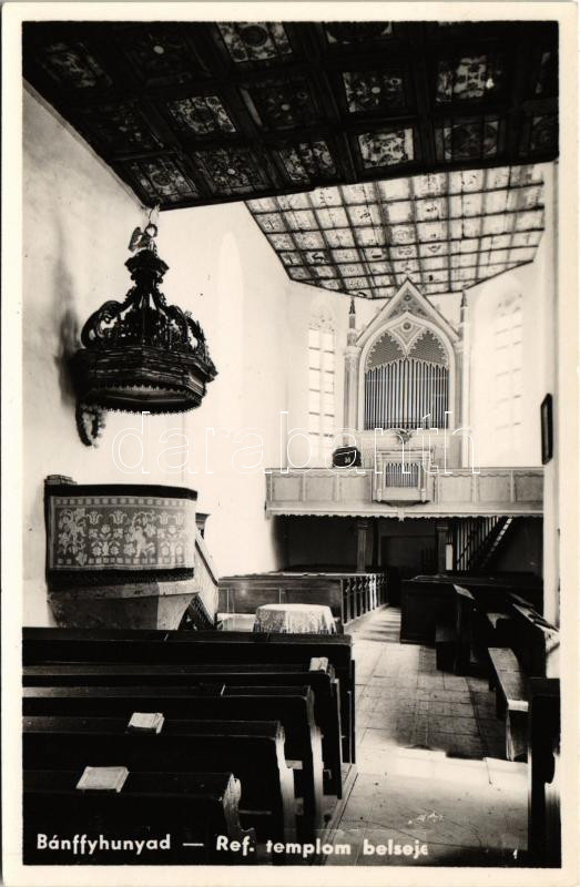 Bánffyhunyad, Huedin; Református templom belseje / Calvinist church in... https://www.darabanth.com/de/434-Fernauktion/434.0/Ansichtskarten/Siebenburgen~2000005/Banffyhunyad-Huedin-Reformatus-templom-belseje-Calvinist-church-interior~II2804726