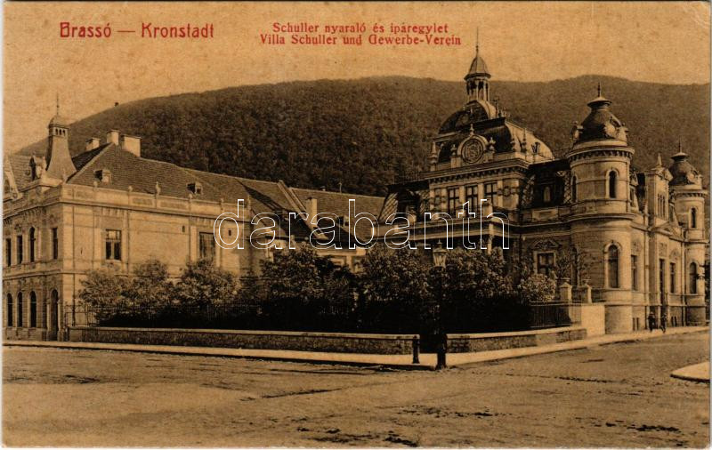 Beschreibung: Brassó, Kronstadt, Brasov; Schuller nyaraló és iparegylet. W.L. (?) 157. / villa and House of Craftsmen Association