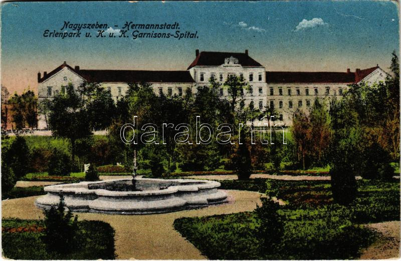 Nagyszeben, Hermannstadt, Sibiu; Erlenpark und k.u.k. Garnison-Spital / Erlen park, Osztrák-magyar helyőrségi kórház / park, K.u.K. military garrison hospital (EK)