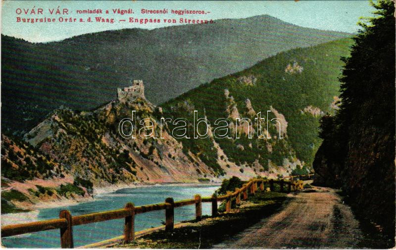 Óváralja, Nezbudská Lúcka, Óvár, Stary Hrad; vár romladék a Vágnál a Strecsnói hegyszorosban. Kiadja Feitzinger Ede No. 636. / Burgruine Óvár a. d. Waag, Engpass von Strecsnó / castle ruins in Povazie, Strecno mountain pass (fa)