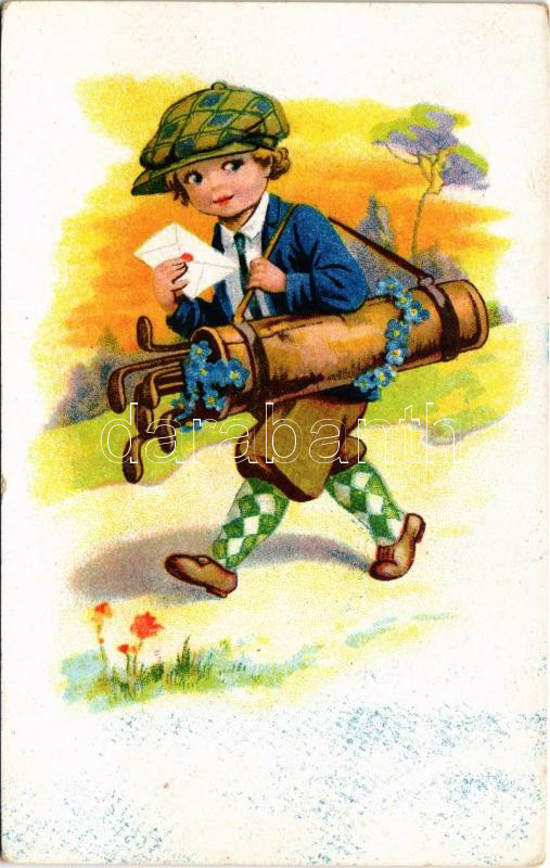 1940 Kisfiú golfütőkkel / Boy with golf clubs https://www.darabanth.com/de/434-Fernauktion/434.0/Ansichtskarten/Sport~2000074/1940-Kisfiu-golfutokkel-Boy-with-golf-clubs~II2808501