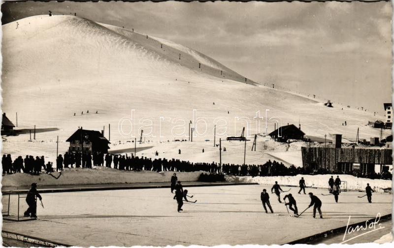 Beschreibung: 1953 L'Alpe d'Huez (isere), La patinoire et le Signal d'Huez / Téli sport, jéghoki / winter sport, ice hokey match (EK)