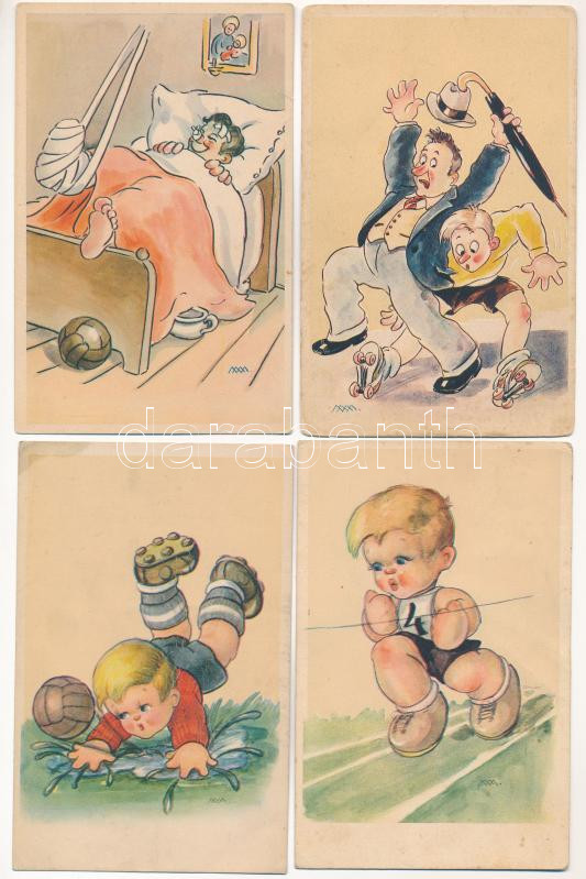 Beschreibung: 4 db RÉGI humoros sport képeslap