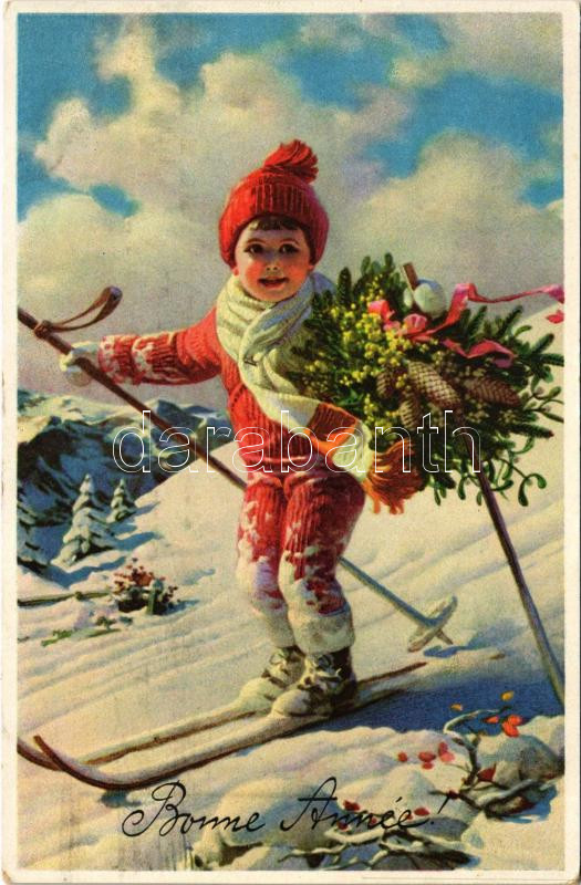 Bonne Année! / Újévi üdvözlet, síelő kisfiú, téli sport / New Year gre... https://www.darabanth.com/de/434-Fernauktion/434.0/Ansichtskarten/Sport~2000074/Bonne-Annee-Ujevi-udvozlet-sielo-kisfiu-teli-sport-New-Year-greeting-skiing-boy-wi~II2807950
