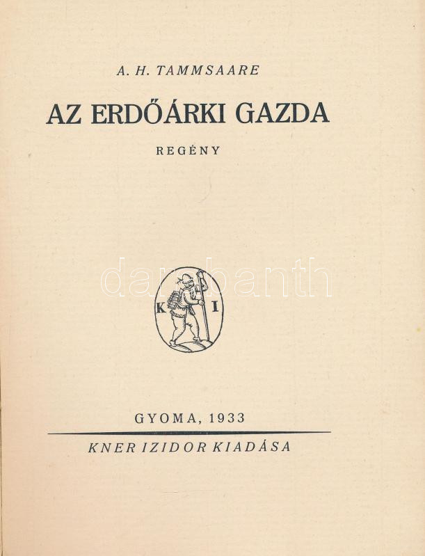 A. H. Tammsaare: Az erdőárki gazda. Ford.: Bán Aladár. Gyoma, 1933, Kn... https://www.darabanth.com/de/434-Fernauktion/434.0/Bucher/Bucher-Andere-kuriositaten~1000021/A-H-Tammsaare-Az-erdoarki-gazda-Ford-Ban-Aladar-Gyoma-1933-Kner-Izidor-214plus1-p-Kiad~II2807726