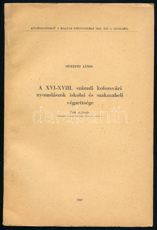 Herepei János: A XVI-XVIII. századi kolozsvári nyomdászok iskolai és szakmabeli végzettsége, 169-185+1 p.