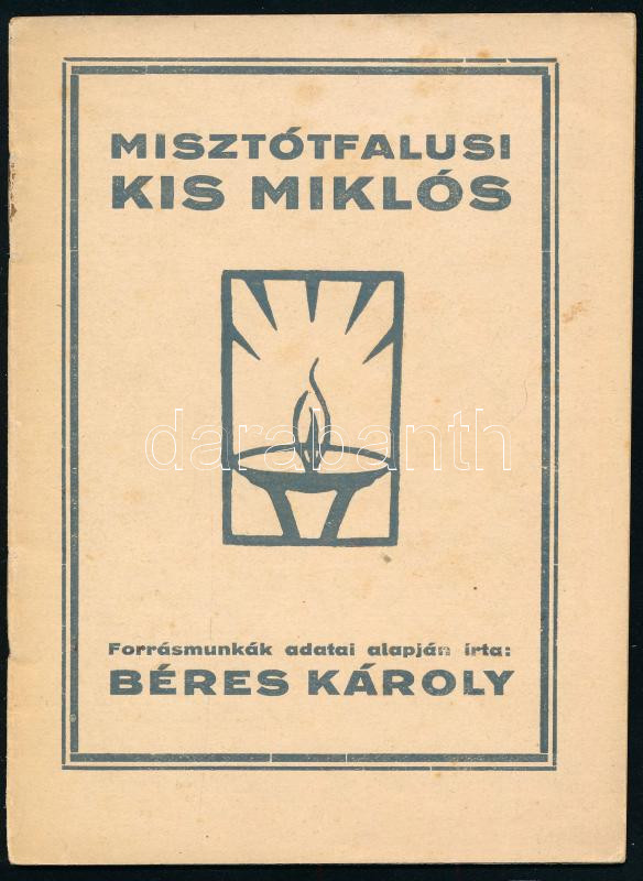 Béres Károly: Misztótfalusi Kis Miklós a XVII. század legnagyobb magyar református "tudós tipográfusa"-a. Forrásmunkák adatai alapján írta: - - . A Református Püspöki Hivatal Nagyvárad Iratterjesztési Osztályának kiadványai III. sor. 7-8. sz. Családi tűzhely mellett. Nagyvárad, 1940., Kálvin Könyvnyomda-ny., 28 p. Kiadói papírkötés.;