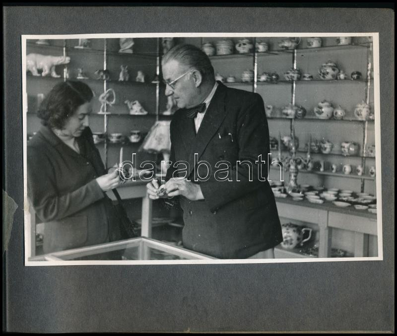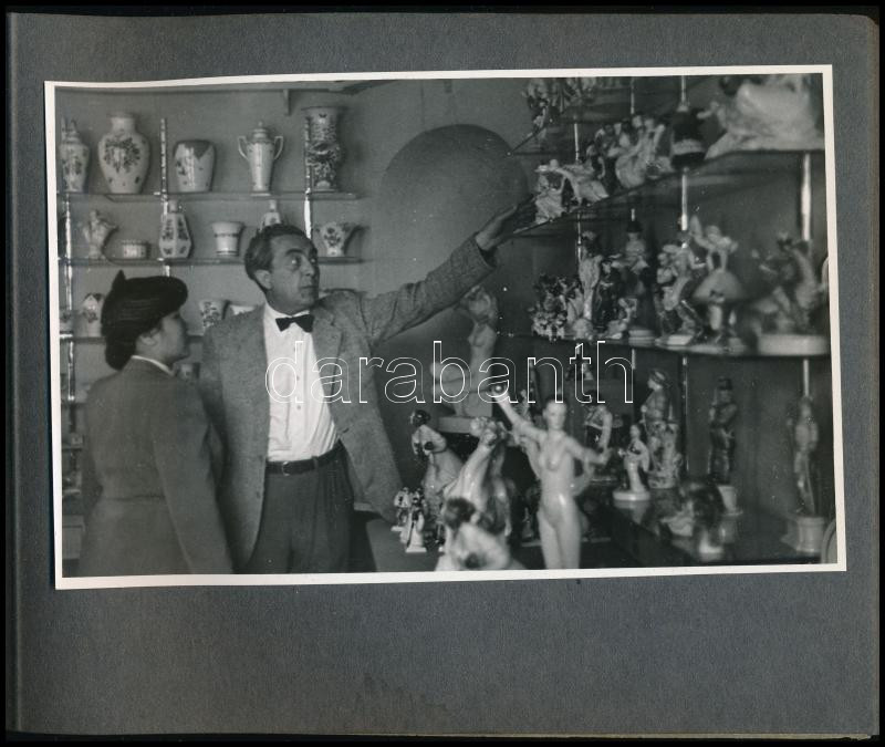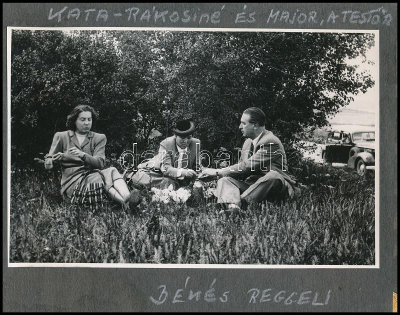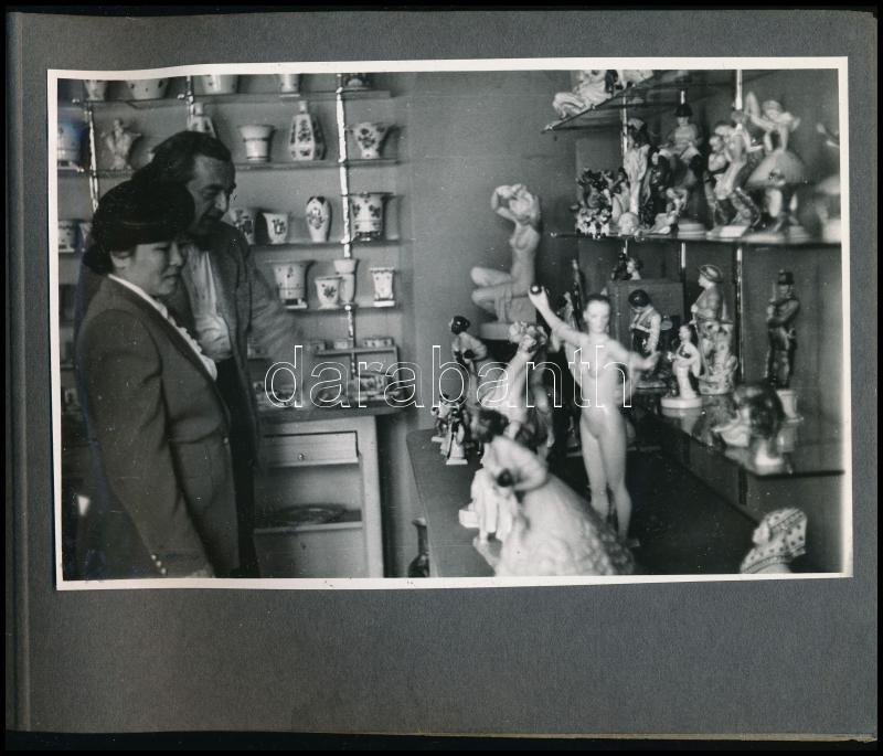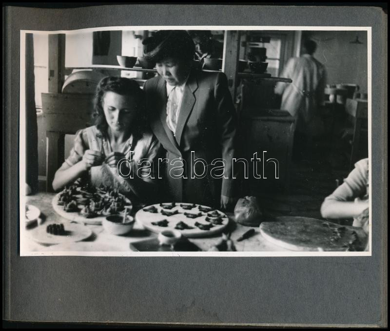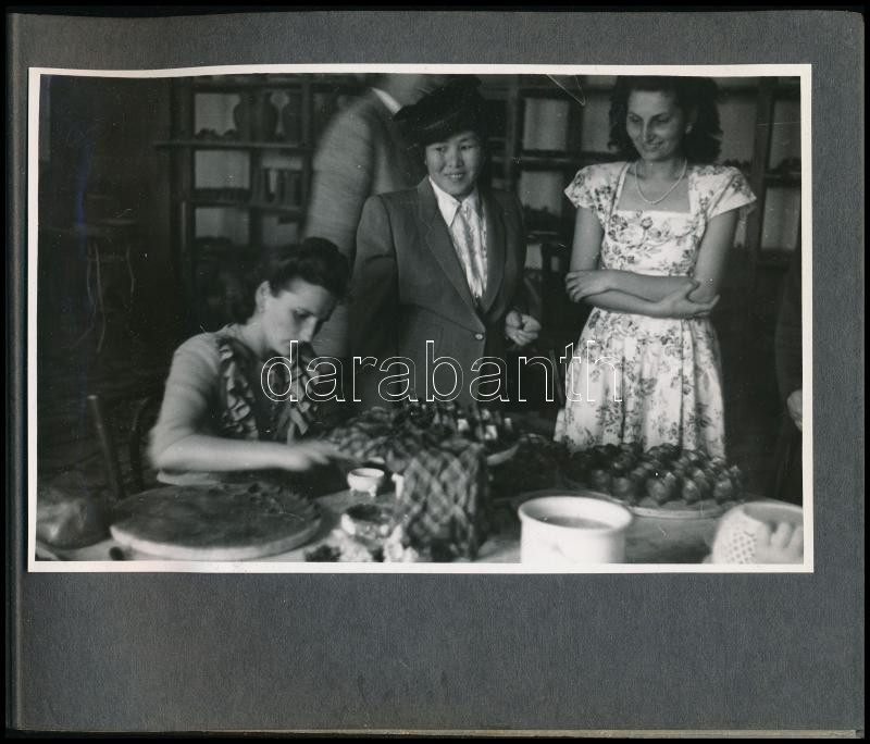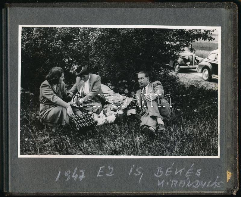 1948 Dinnyés Lajos (1901-1961) kisgazda politikus, miniszterelnök feleségének, Hegedűs Katalinnak és Rákosi Mátyás (1891-1971) kommunista politikus, későbbi miniszterelnök és az MDP főtitkárának a feleségének, Fenya Fjodorovna Kornyilovának a látogatása Herenden, benne a porcelángyárban készült fotókkal is, valamint a két "látogató" és a testőr békés piknikezésével, családtag által feliratozva, 24 db fotó, haránt-alakú, fűzött fotóalbumban, 12x18 cm és 11x18 cm között méretben