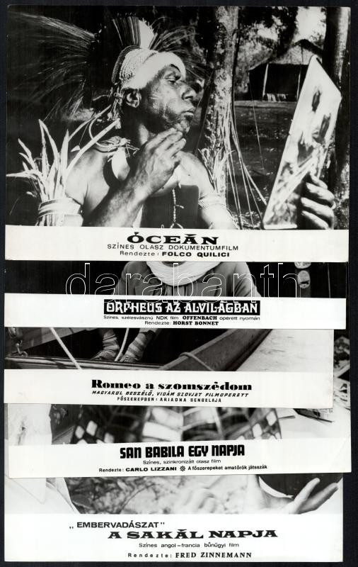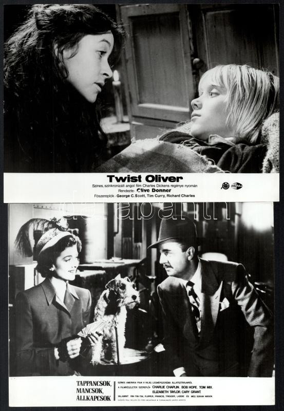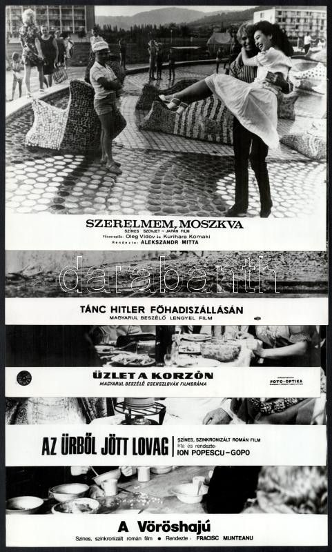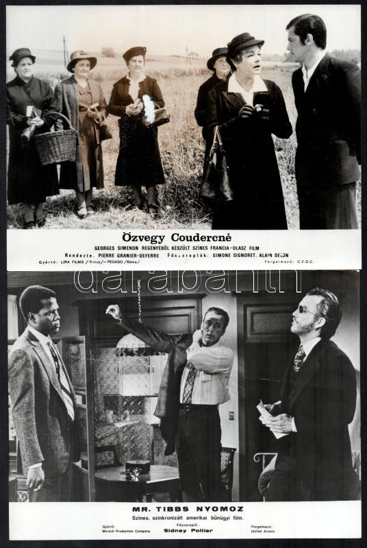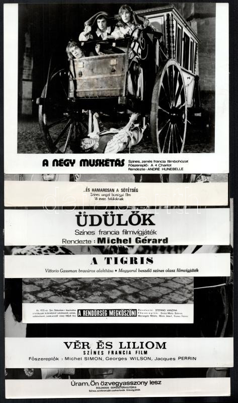 cca 1988 előtt külföldön készült filmek egy-egy jelenete, 33 db vintage produkciós filmfotó, ezüst zselatinos fotópapíron, valamennyi kép hibákkal (elszíneződés, törésnyom, szakadás, stb.), 18x24 cm