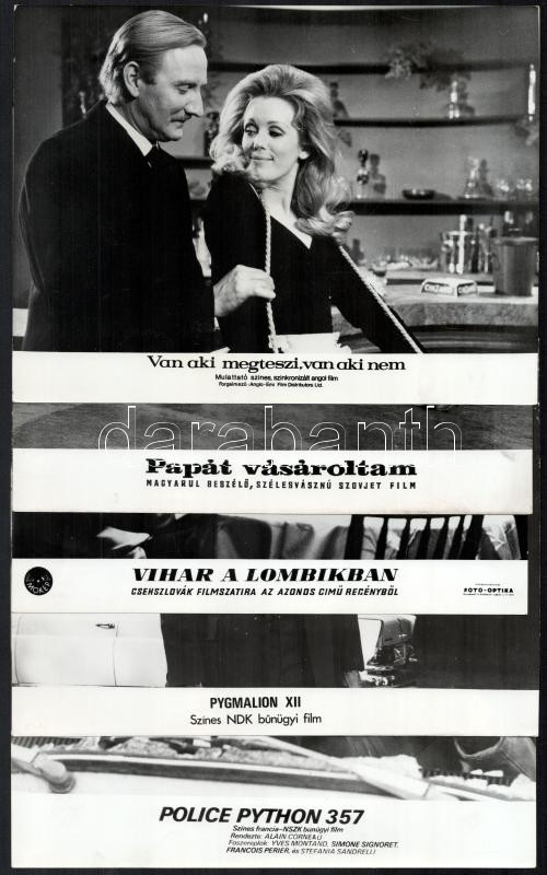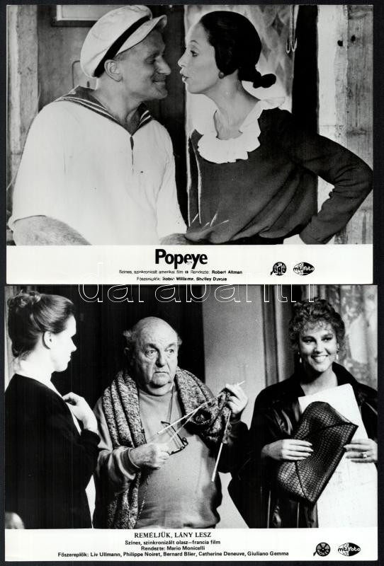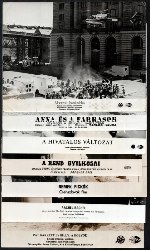 cca 1986 előtt, külföldön készült filmek egy-egy jelenete, 15 db vintage produkciós filmfotó, ezüst zselatinos fotópapíron, a használatból eredő - esetleges - kisebb hibákkal, 18x24 cm