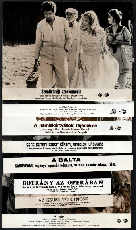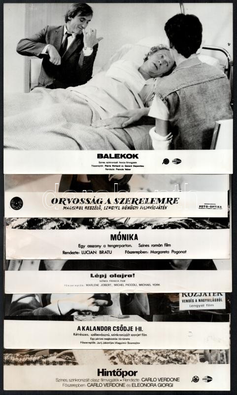cca 1987 előtt, külföldön készült filmek egy-egy jelenete, 17 db vintage produkciós filmfotó, ezüst zselatinos fotópapíron, a használatból eredő - esetleges - kisebb hibákkal, 18x24 cm