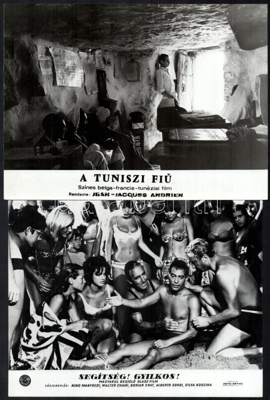 cca 1989 előtt külföldön készült filmek egy-egy jelenete, 19 db vintage produkciós filmfotó, ezüst zselatinos fotópapíron, a használatból eredő - esetleges - kisebb hibákkal, 18x24 cm