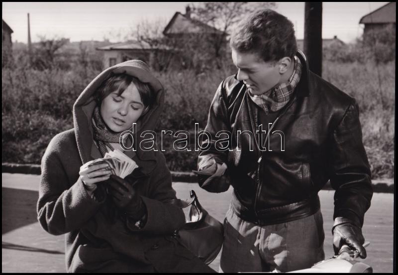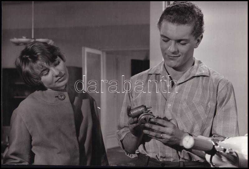Törőcsik Mari és Mécs Károly a ,,Két emelet boldogság" című filmben, 3 db vintage produkciós filmfotó, ezüst zselatinos fotópapíron, 20x29 cm