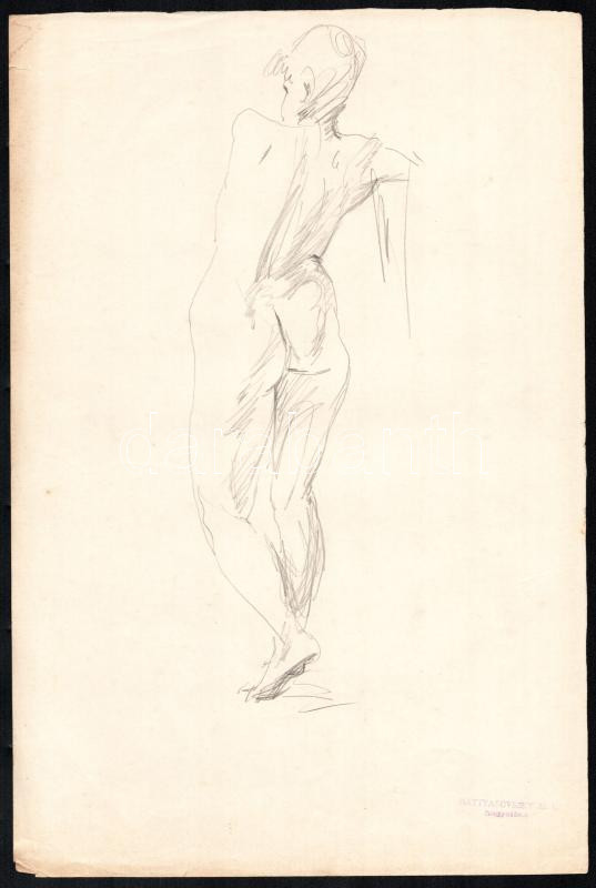 Mattyasovszky-Zsolnay László (1885-1935), kétoldalas mű: Álló férfiakt. Ceruza, papír. Hagyatéki pecséttel. Jobb alsó sarkában apró sérüléssel. 34x21 cm