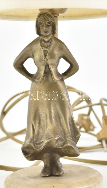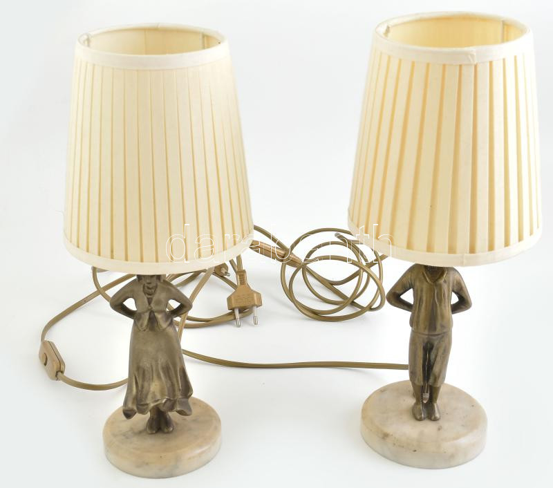 Beschreibung: Figurális asztali lámpa pár, kopásokkal,működik, bronz, márvány, szerelék, lámpaernyő m: 34 cm