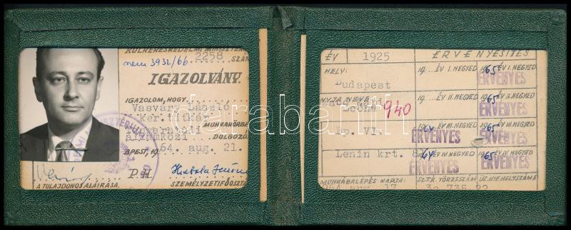 1964 Külkereskedelmi minisztérium arcképes igazolványa https://www.darabanth.com/de/434-Fernauktion/434.0/Kunst-Dokumente-andere-Sammelgebiete/Dokument~500020/1964-Kulkereskedelmi-miniszterium-arckepes-igazolvanya~II2804863