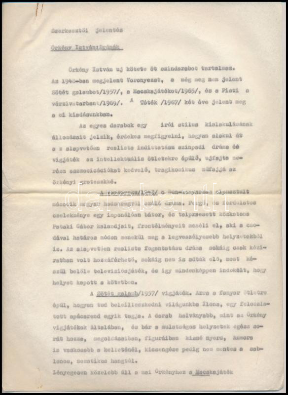 1969 Magvető Kiadó szerkesztői jelentése Örkény István drámáinak kiadá... https://www.darabanth.com/de/434-Fernauktion/434.0/Kunst-Dokumente-andere-Sammelgebiete/Dokument~500020/1969-Magveto-Kiado-szerkesztoi-jelentese-Orkeny-Istvan-dramainak-kiadasarol~II2804992