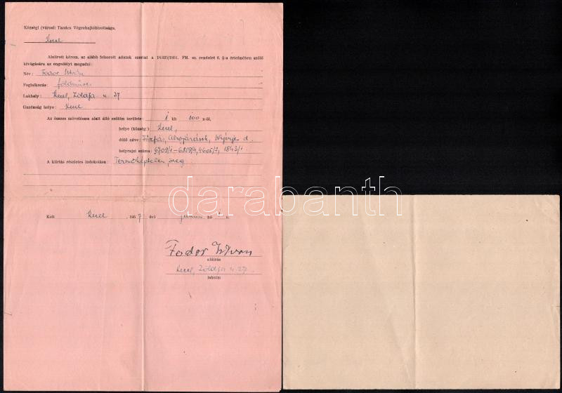 cca 1950 Engedély szőlőtőke kivágására + értesítés tartozás fejében le... https://www.darabanth.com/de/434-Fernauktion/434.0/Kunst-Dokumente-andere-Sammelgebiete/Dokument~500020/cca-1950-Engedely-szolotoke-kivagasara-plus-ertesites-tartozas-fejeben-lefoglalt-borrol~II2809629