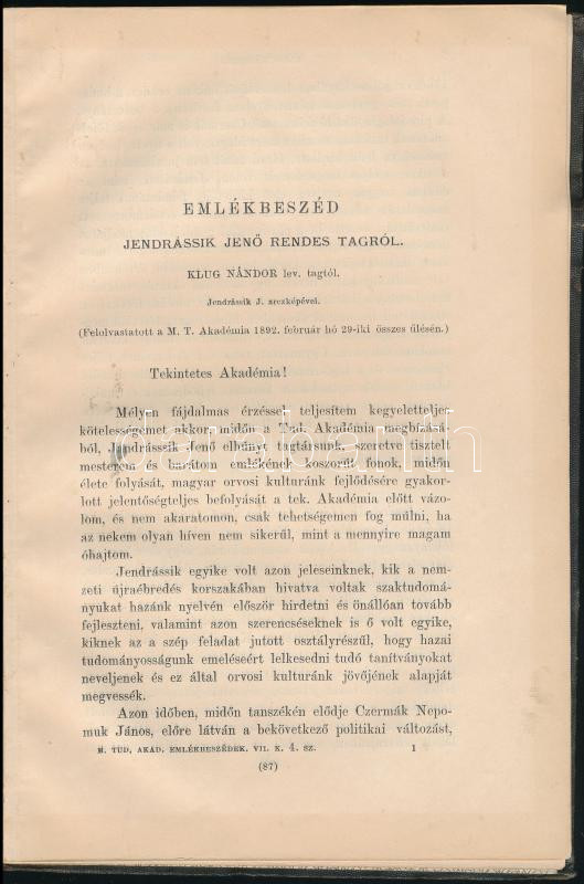 1892 Emlékbeszéd Klug Nándor M. Tud. Akadémia l. tagtól Jendrassik Jen... https://www.darabanth.com/de/434-Fernauktion/434.0/Kunst-Dokumente-andere-Sammelgebiete/Drucksachen~1000002/1892-Emlekbeszed-Klug-Nandor-M-Tud-Akademia-l-tagtol-Jendrassik-Jeno-rendes-tagtol-seru~II2808082
