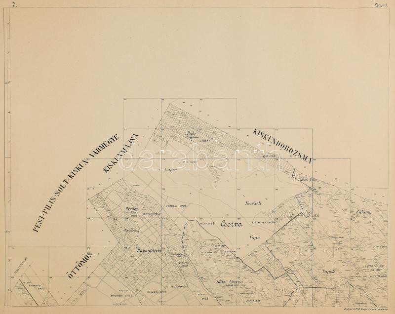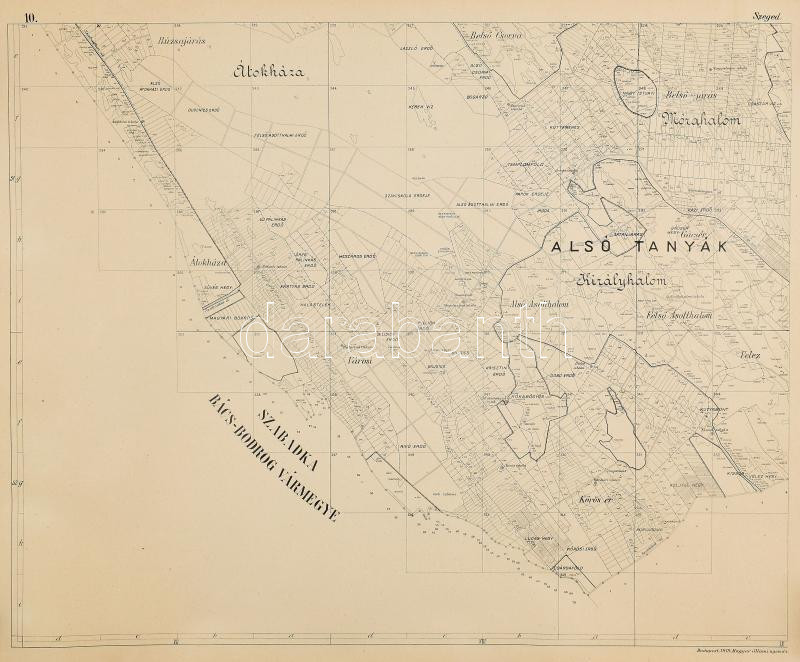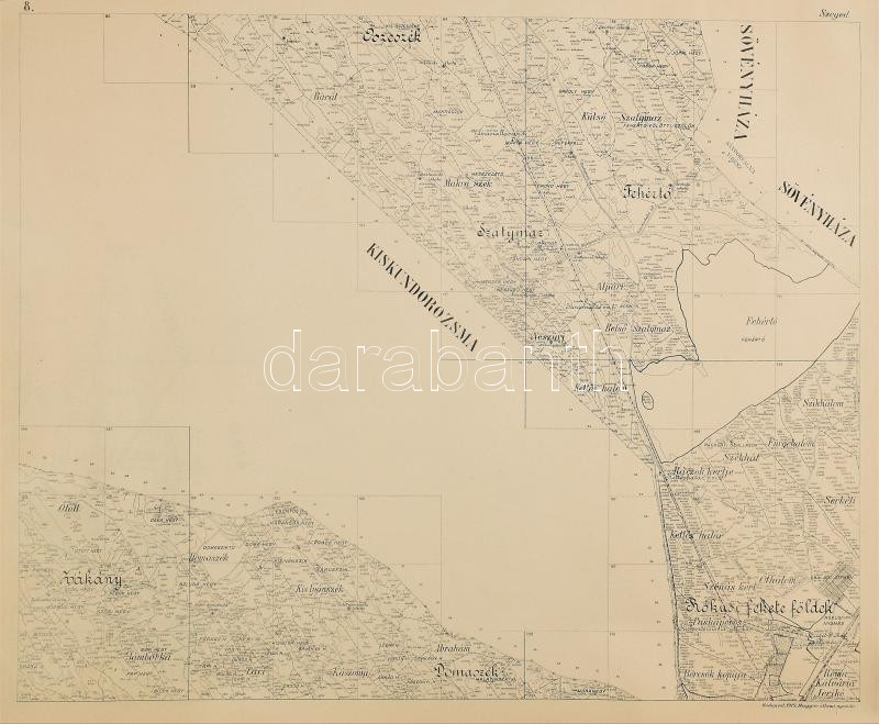 1919 Szeged szabad kir. város határának térképe, tervezte: Jakabffy Lajos, sokszorosította a Magyar állami nyomda, Bp., 1:28800, 12 darabból álló térkép, 60x76 cm (x12), részben lapszéli kisebb szakadásokkal, feltekerve
