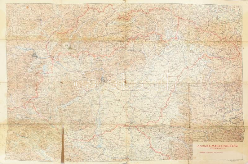 1939 Csonka-Magyarország közigazgatási térképe a visszatért területekkel (Felvidék, Kárpátalja), M. Kir. Honvéd Térképészeti Intézet, 1:750000, szakadt, 69×100 cm